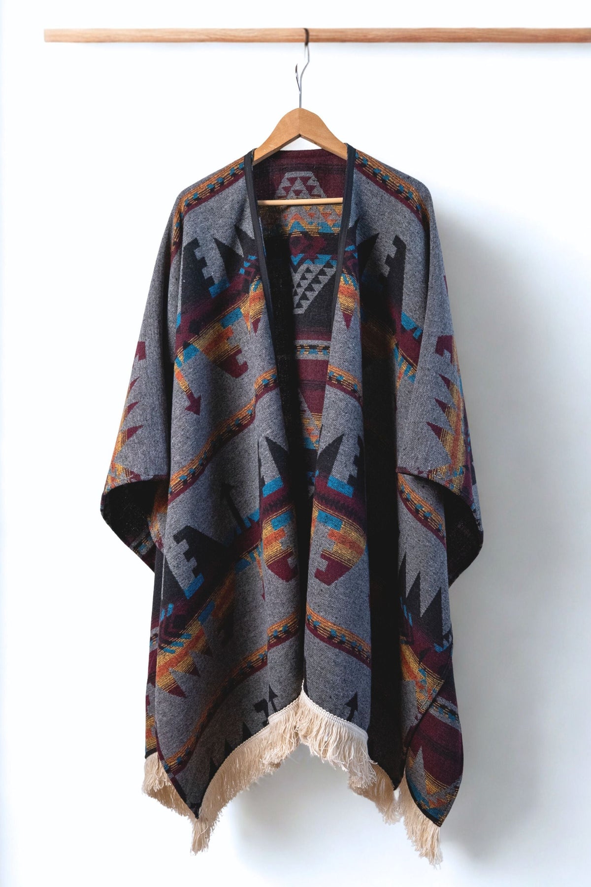 Made from a warm and durable wool–acrylic blend, every ruana is finished by hand with our signature 100% organic cotton fringe. Generously cut at 33–36" in length and 57" wide, they offer elegant coverage while remaining fluid, comfortable, and wearable in daily life.