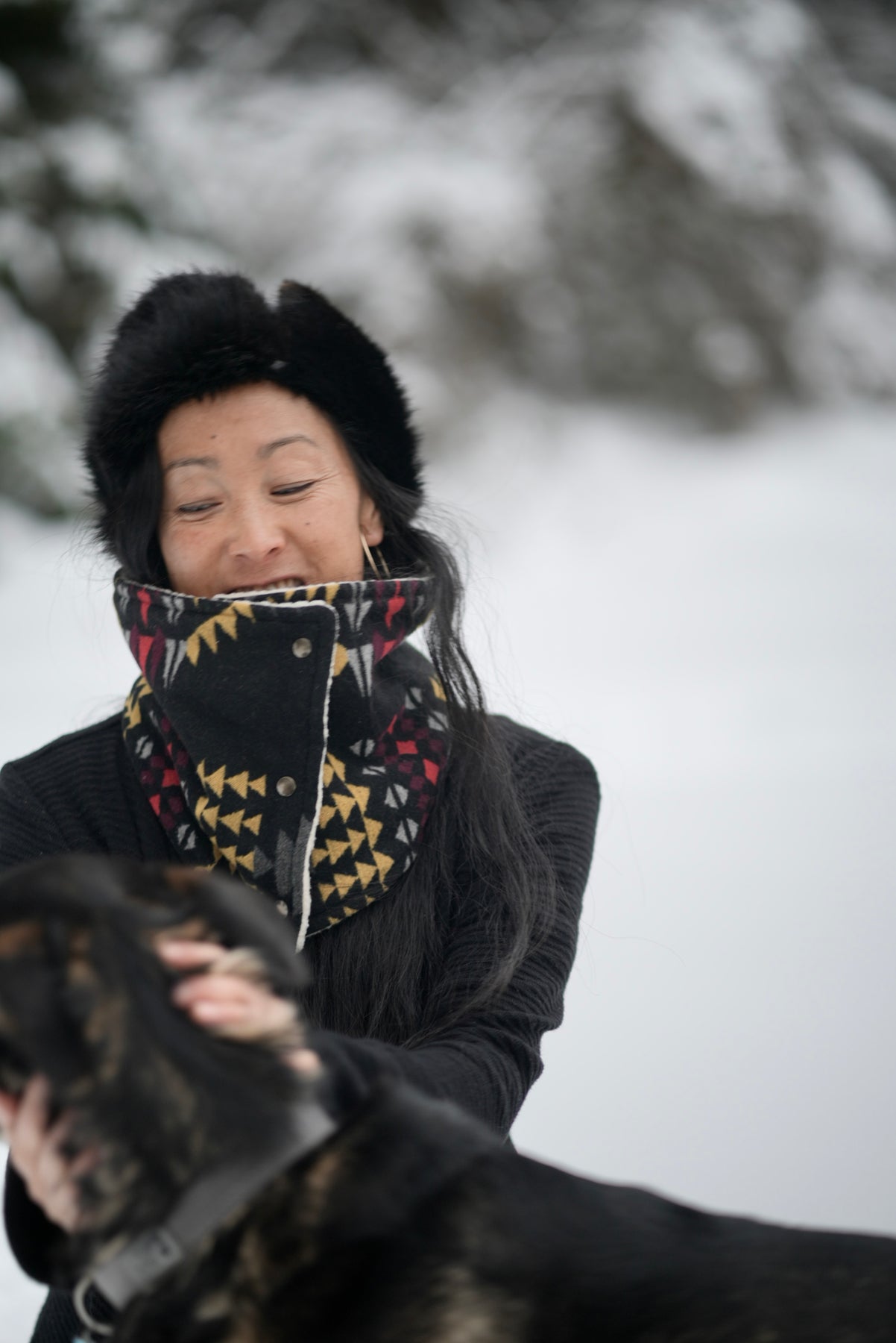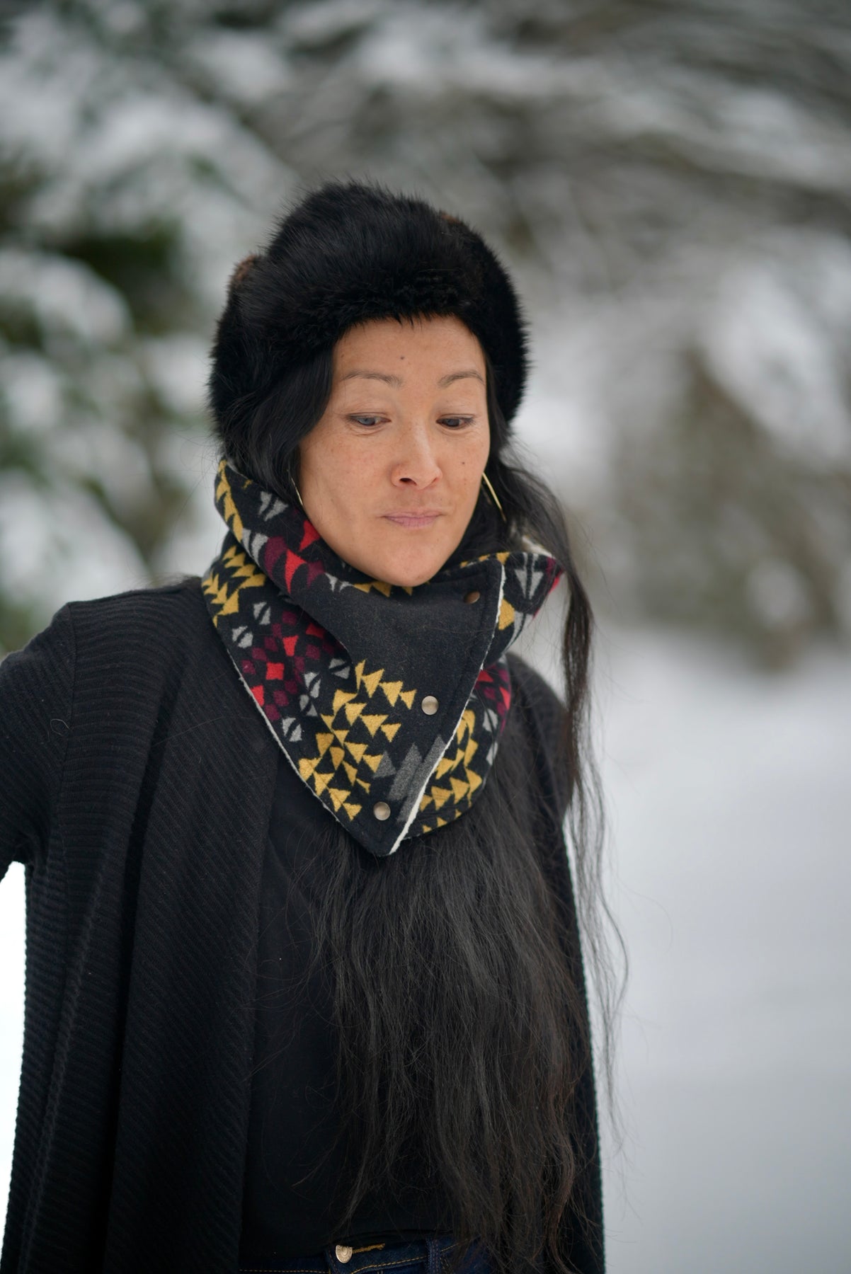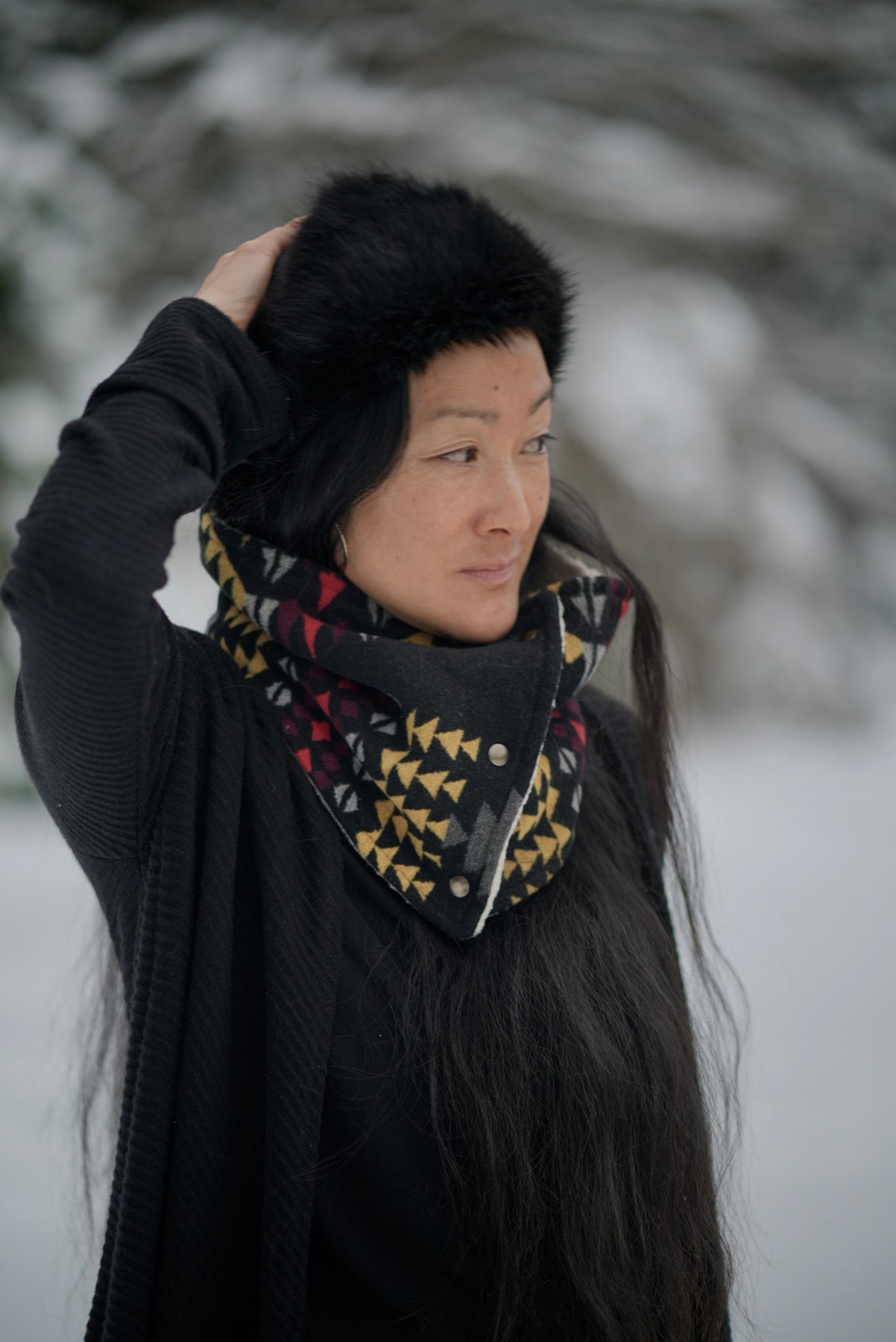 Le Cache-Cou doublé Sherpa est fabriqué à la main au Québec à partir des chutes de tissu Sacred Cloth, dans le cadre de notre démarche zéro déchet. Son design minimaliste reste près du cou — pas de longues extrémités, pas de tracas — juste une chaleur qui dure.