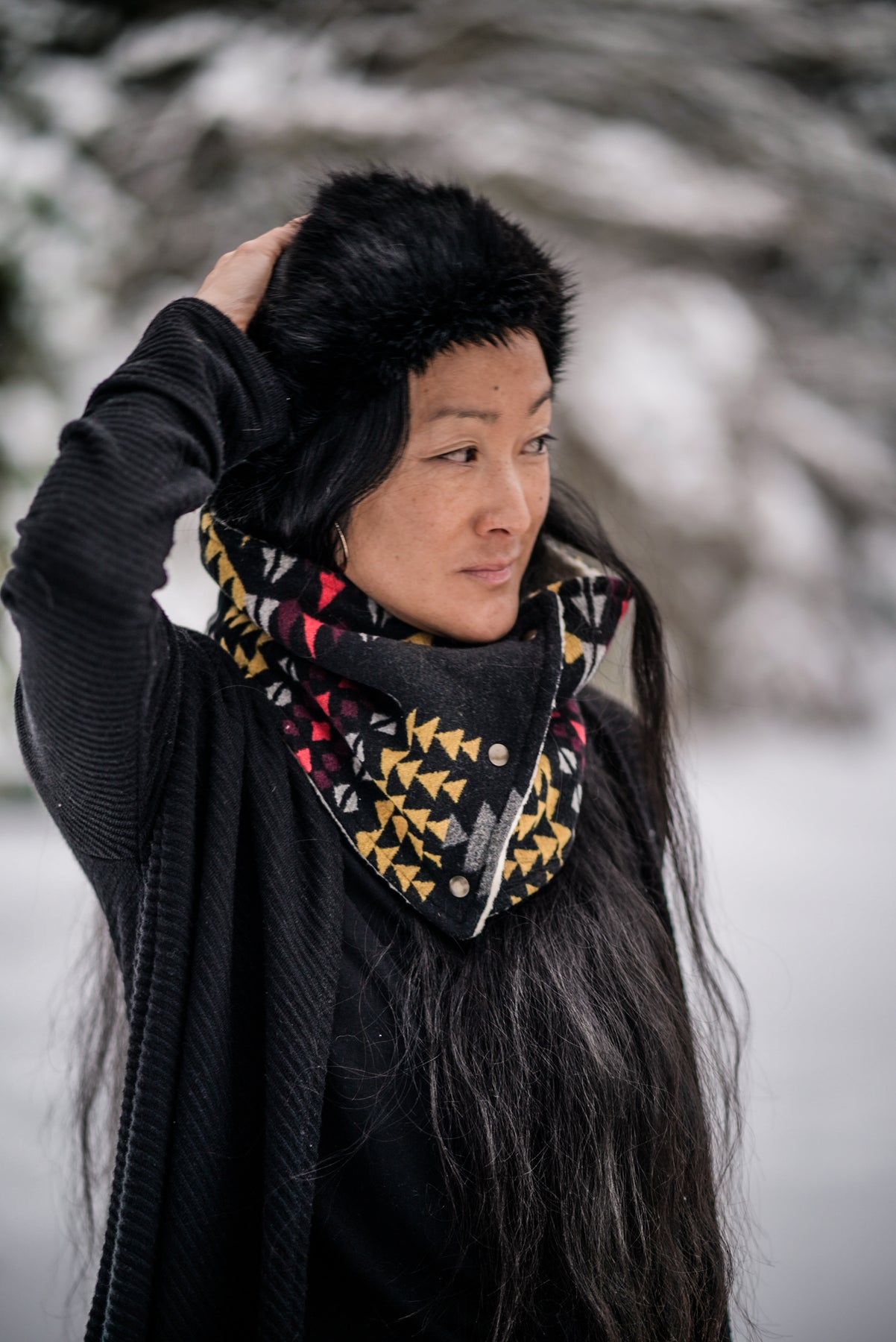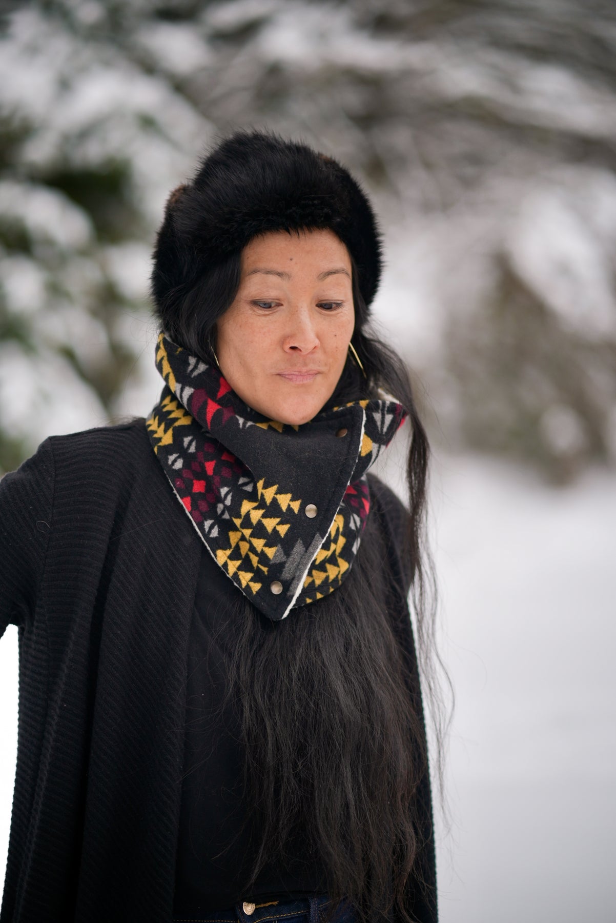 Le Cache-Cou doublé Sherpa est fabriqué à la main au Québec à partir des chutes de tissu Sacred Cloth, dans le cadre de notre démarche zéro déchet. Son design minimaliste reste près du cou — pas de longues extrémités, pas de tracas — juste une chaleur qui dure.