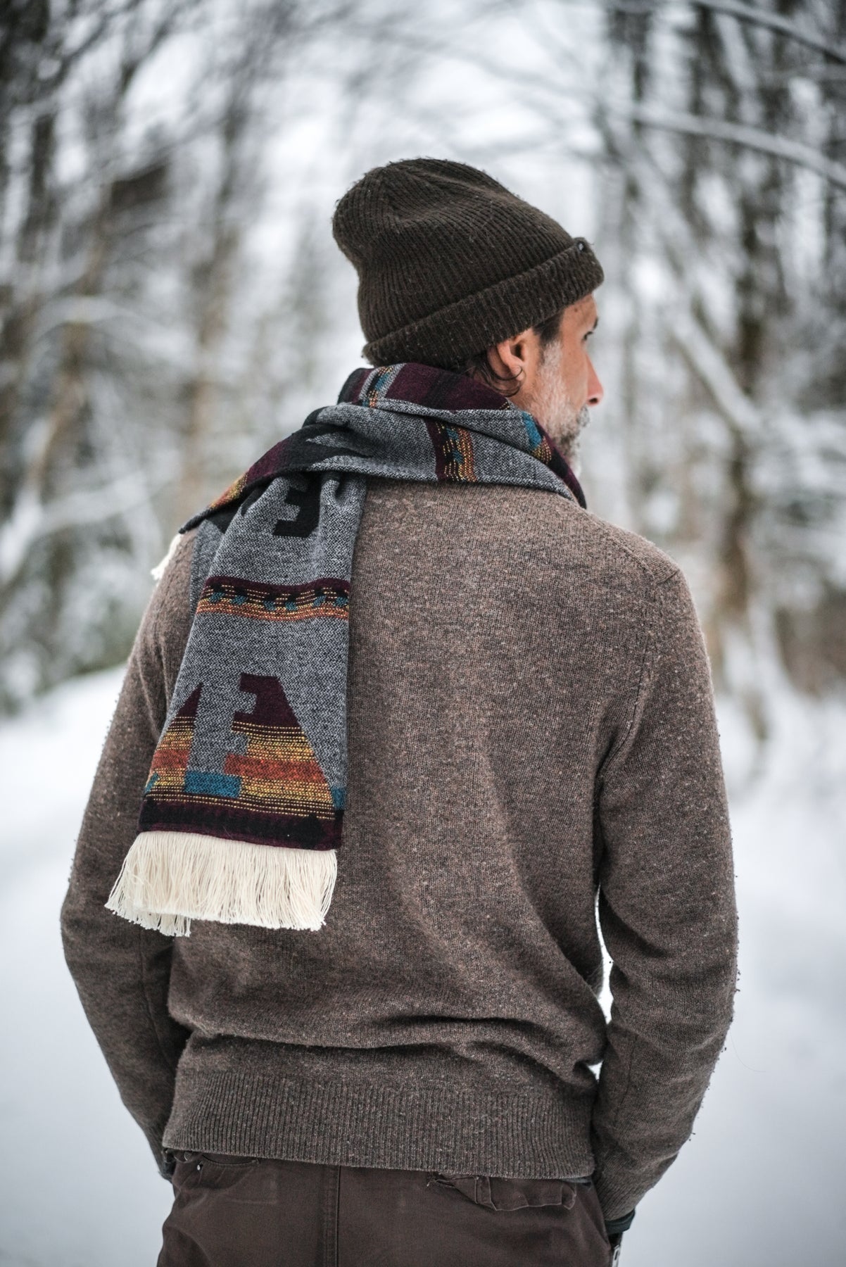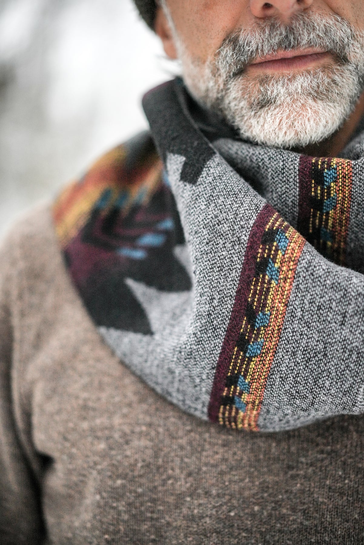 Crafted from small cuts left over from production, each Zero-Waste Scarf measures between 9–13" wide by 70" long, and is finished with our signature organic cotton fringe, it offers a soft, warm layer for fall and winter. An effortless way to add a Sacred Cloth touch to any outfit. Only a few available in each print. Perfect for Men and Women
